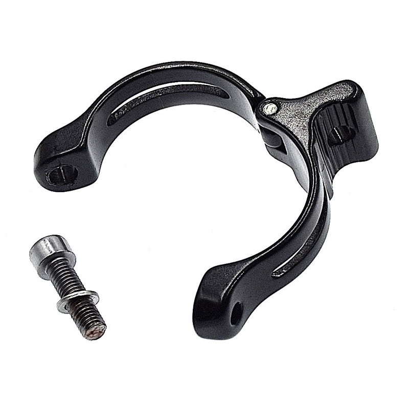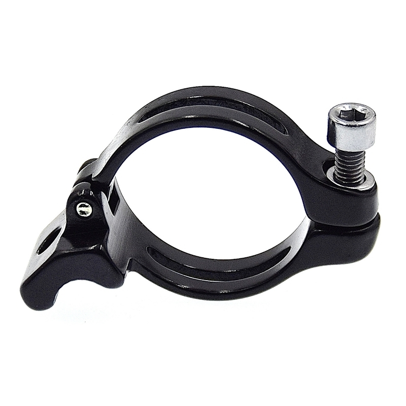 Collier Aluminium noir avec vis et rondelle inoxydable pour dérailleur avant de vélo.
