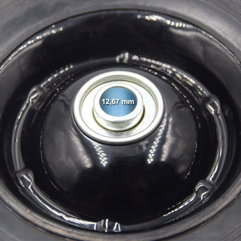 La roue dispose de deux entretoises ainsi que des roulements à billes protégés.