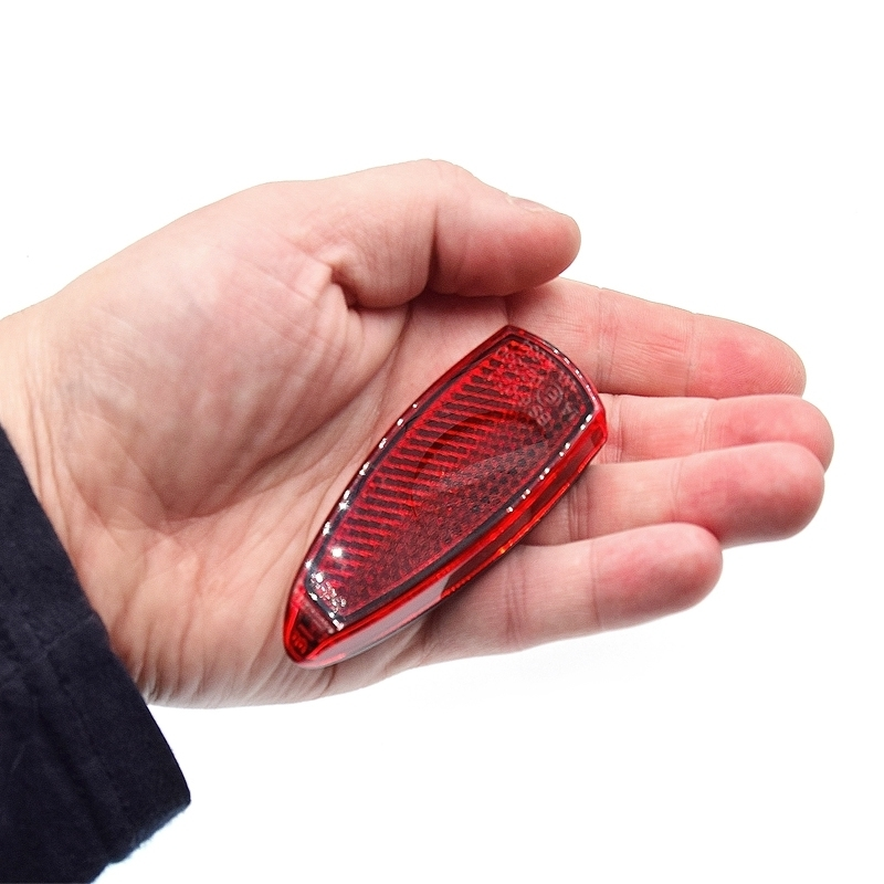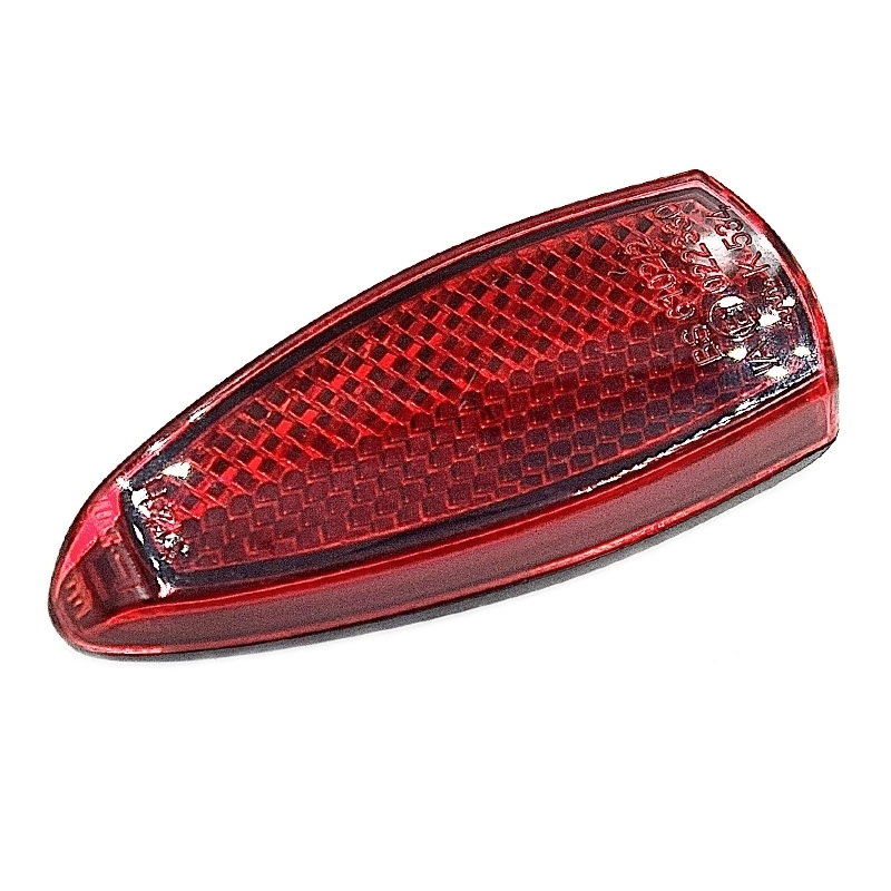 Ce catadioptre rouge de forme allongé dispose d’un film autocollant permettant de le fixer directement sur le garde boue à l’arrière du vélo.