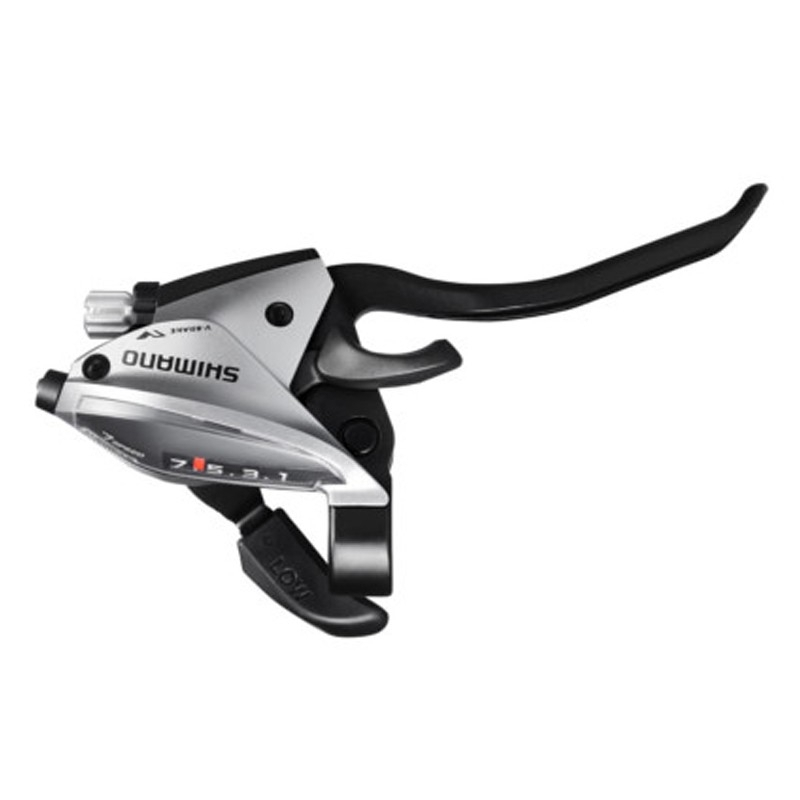 Cette manette sur guidon Shimano ST-EF510 Altus permet de freiner et de changer les vitesses. Livrée avec son câble de dérailleur pré-installé, son installation se fait du côté droit, elle vous permet de regrouper en u seul et même endroit le frein avec 4 doigts et les fonctions de changements de vitesses pour un dérailleur arrière 7 vitesses.