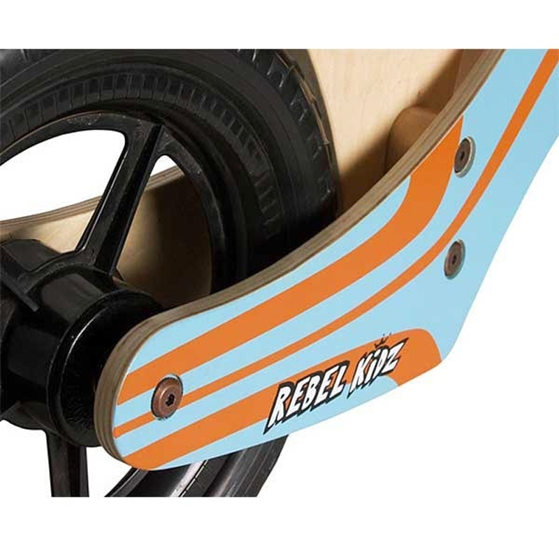 Ce vélo junior bleu et orange 12 pouces dispose d’un cadre en bois robuste ainsi des roues avec des chambres à air et des pneus 12 pouces gonflables en EVA pour un maximum de confort.