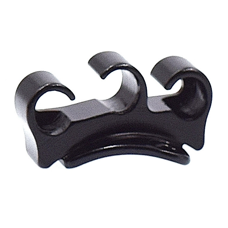 Cette pièce en aluminium de couleur noire permet le passage de trois gaines de frein pour vélo. Pour permettre un assemblage facile et rapide de cet élément de fixation sur cadre, nous vous recommandons les rivets pour assemblage des pièces détachées sur cadre de vélo en aluminium.