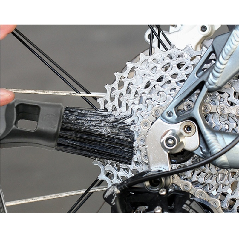 La brosse de nettoyage pour chaîne et roue-libre permet de retirer avec faciliter la graisse séchée, les petits morceaux de bois et autres salissures coincés dans les éléments de transmission du vélo.