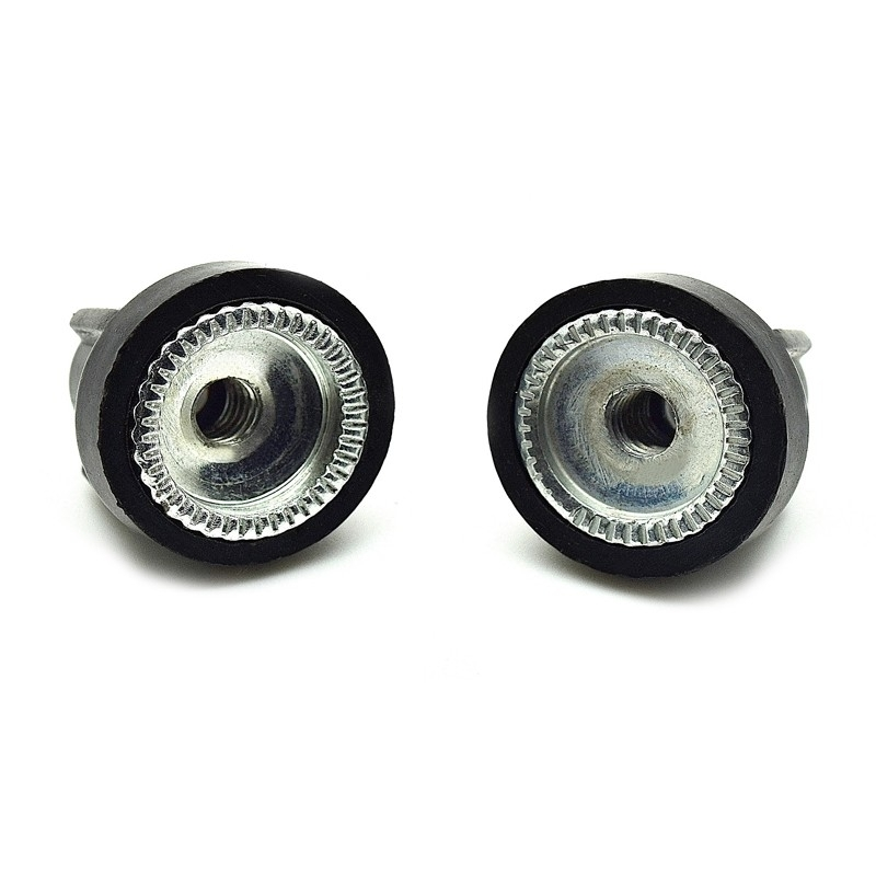 Ces écrous en acier recouvert de plastique sont prévu pour équiper les axes de serrage rapide pour roues de vélo. Pratique quand on à perdu ces écrous lors d’un démontage de roues ou lors d’un vol.