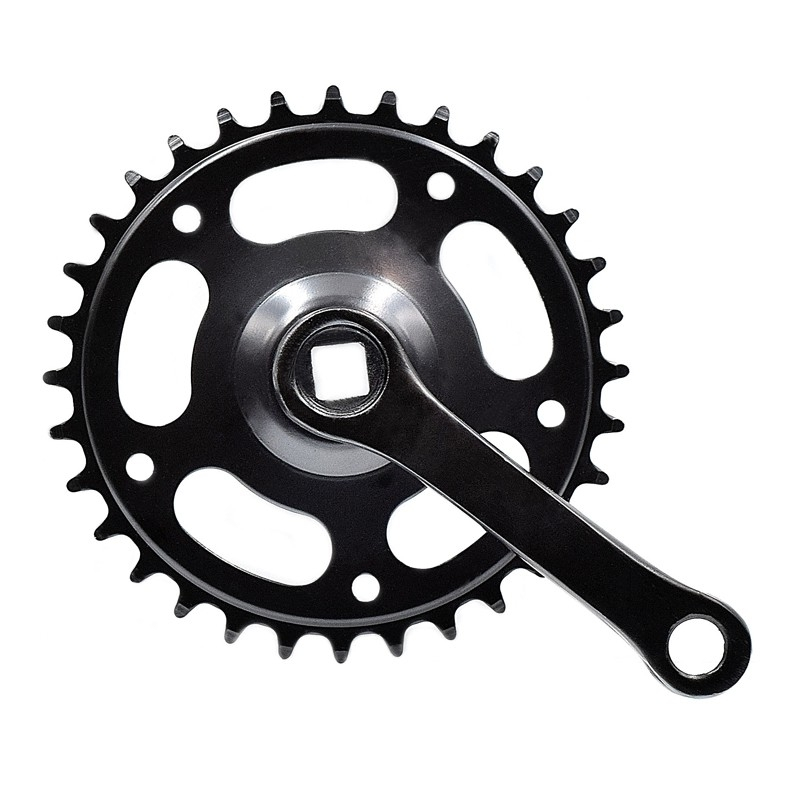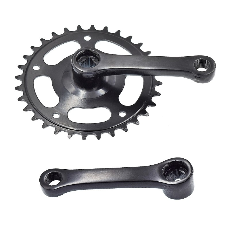 Ce pédalier noir mono plateau de 32 dents est destiné aux vélos pour enfant de 12 à 18 pouces. Fourni avec 2 manivelles courtes de 102 mm, il se monte sur un axe à emmanchement carré d’une longueur de 127 mm.