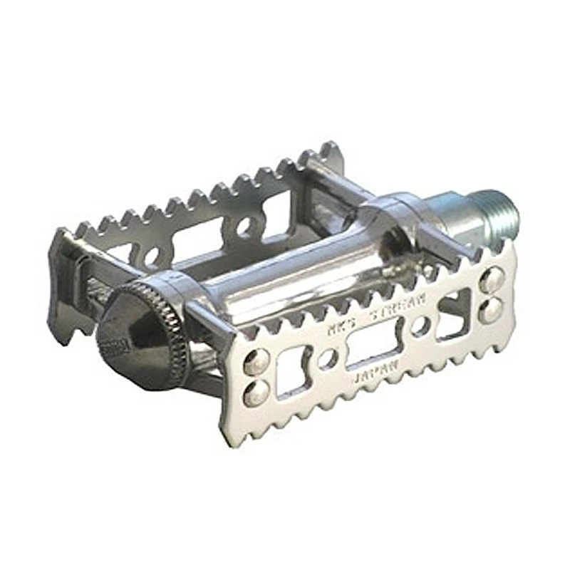 Les pédales Sylvan Stream MKS en aluminium anodisé équipées de roulements à billes sur cuvette disposent de parties crantées en acier sur les deux côtés des pédales afin de d’optimiser l’adhérence du pied par mauvais temps ou lors d’un appui prolongé pour monter une côte.
