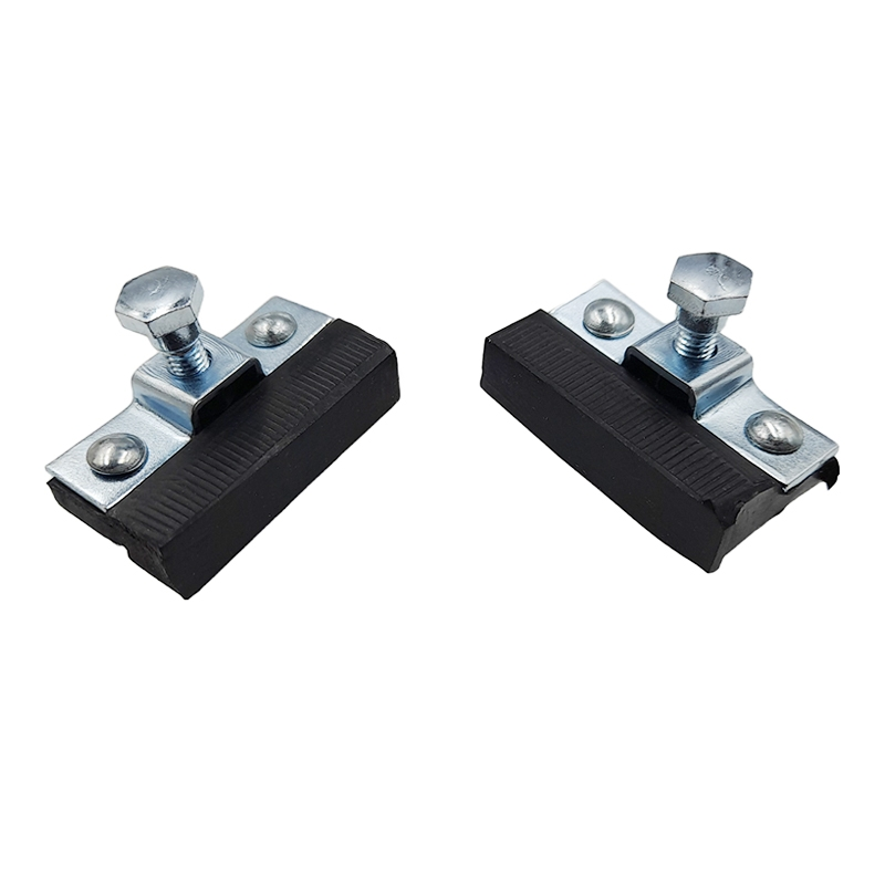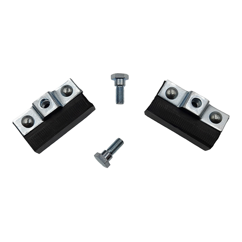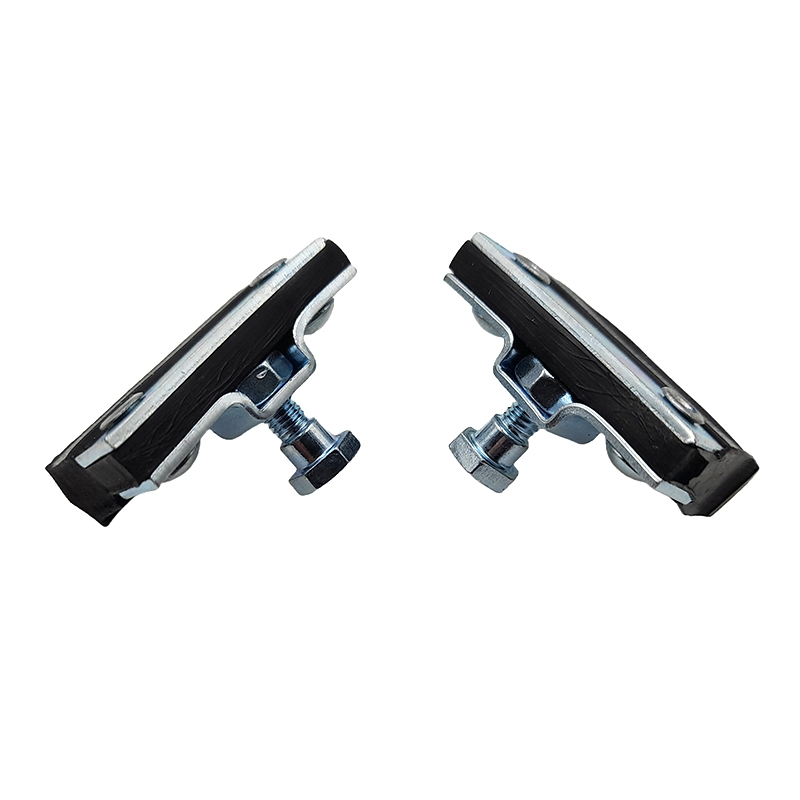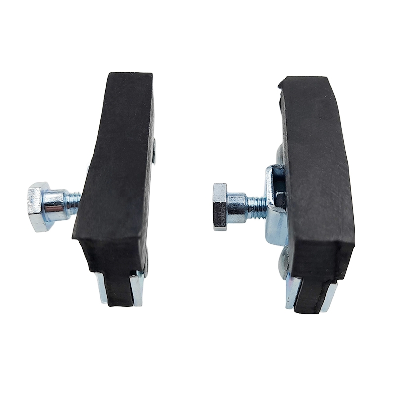 Paire de patins avec vis déportée pour vélo et cyclomoteur constitué de caoutchouc riveté et deux vis pour le montage.