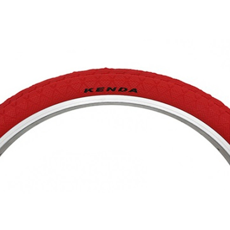 Ce pneu pour Bmx de la marque Kenda de couleur rouge est idéal pour le freestyle. Ce pneu ne laisse pas de traces lors dune utilisation en salle.