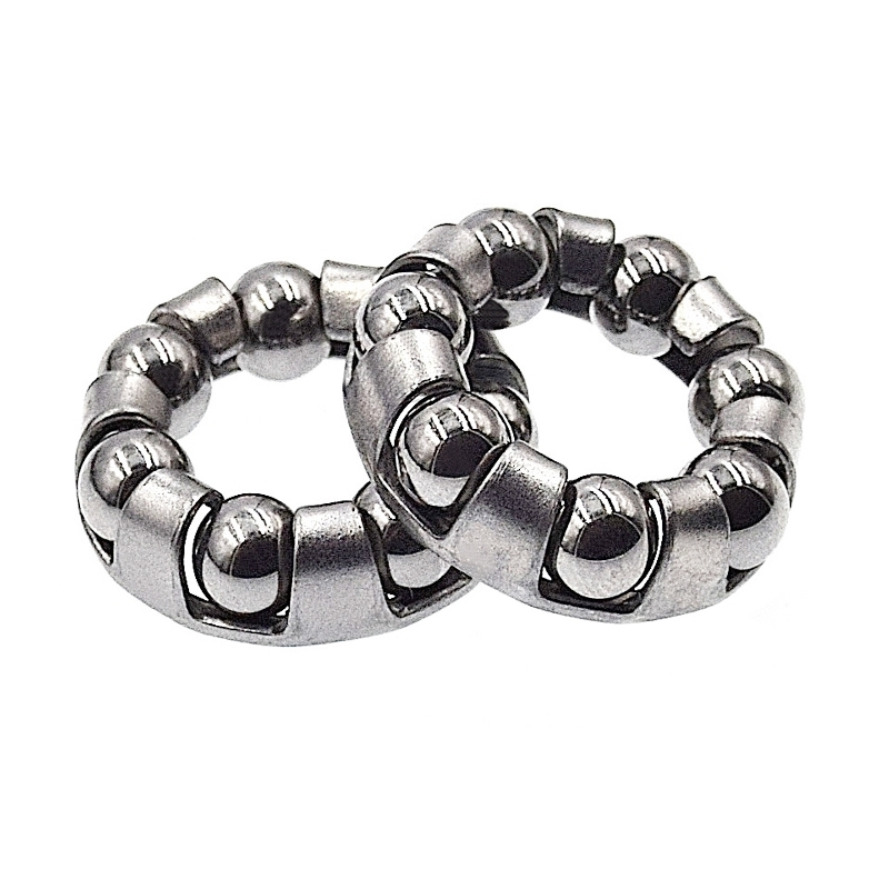 L’axe est fourni avec 2 entretoises, 1 rondelle, 2 coupelles et 2 écrous ainsi que 2 cages de 7 billes permettant une parfaite rotation dans le moyeu de la roue.