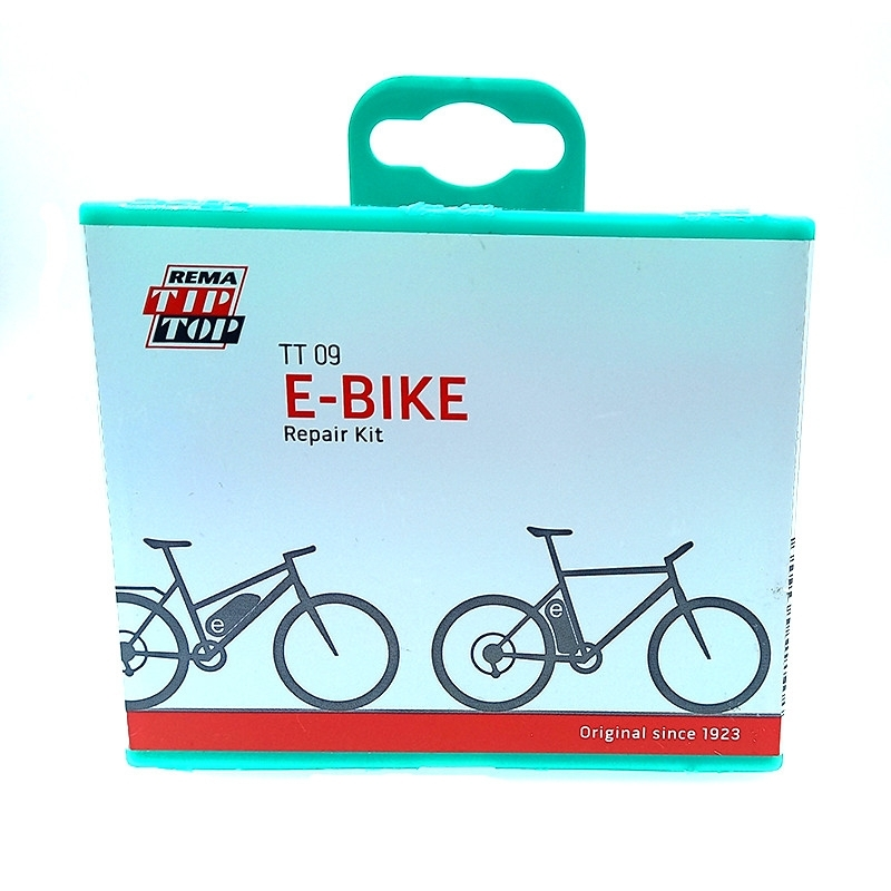 Kit de réparation adapté aux besoins des cyclistes se déplaçant en vélo à assistance électrique, avec gants jetables et détecteur de trous pour localiser facilement les perforations.