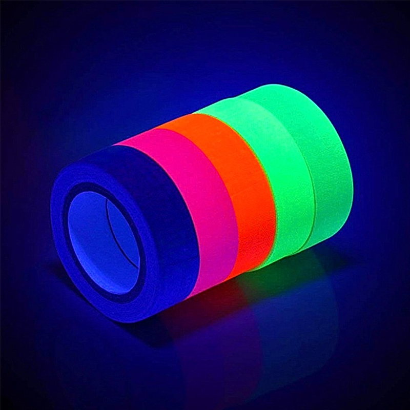 - Nombreuses utilisations : Le ruban adhésif est un accessoire idéal pour les fêtes des enfants et des adultes. Améliorez vos décorations de fête. Vous pouvez également décorer les murs, les sols, les fenêtres, les planchers de danse, les meubles, la table de billard, les gâteaux, les images et peut également être attaché à des vêtements, des articles marqués. Il peut être utilisé comme ruban adhésif phosphorescent pour la performance sur scène.