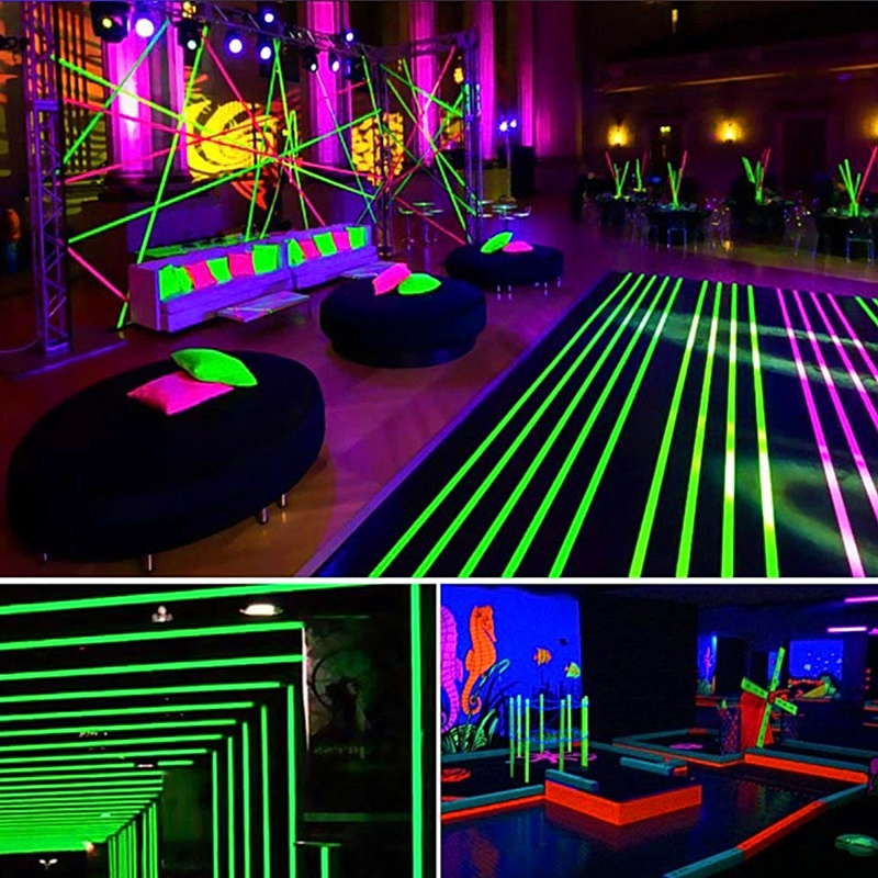 - Ne laisse aucun résidu ou résidu : Le ruban adhésif réactif à la lumière noire UV a été conçu pour ne laisser aucun résidu sur la plupart des surfaces. Peut être collé sur n’importe quelle surface sèche, y compris le carrelage, le verre, les vêtements, les tapis, le bois, le plastique, etc. Le ruban adhésif néon est solide, durable, imperméable et peut être utilisé sans affecter même si vous marchez plusieurs fois.