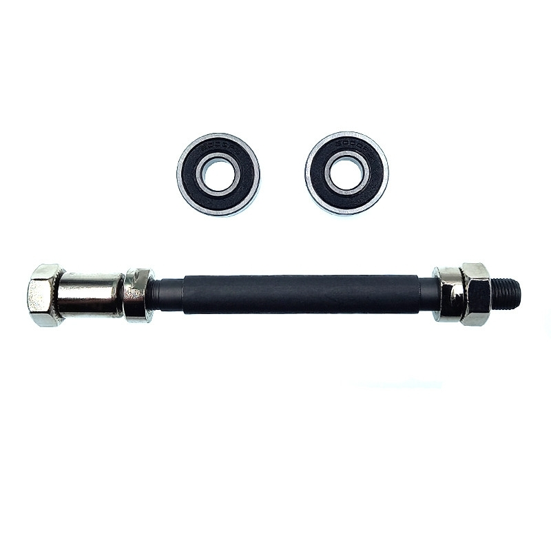L’axe est fourni avec 2 rondelles, 2 écrous et 1 entretoise ainsi que 2 roulements 6000 RS pour assurer une bonne rotation.