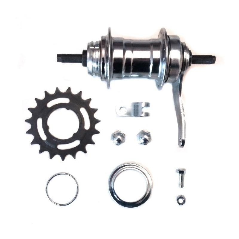 Moyeu à rétropédalage, 36 trous avec accessoires et axe chromé 158 mm