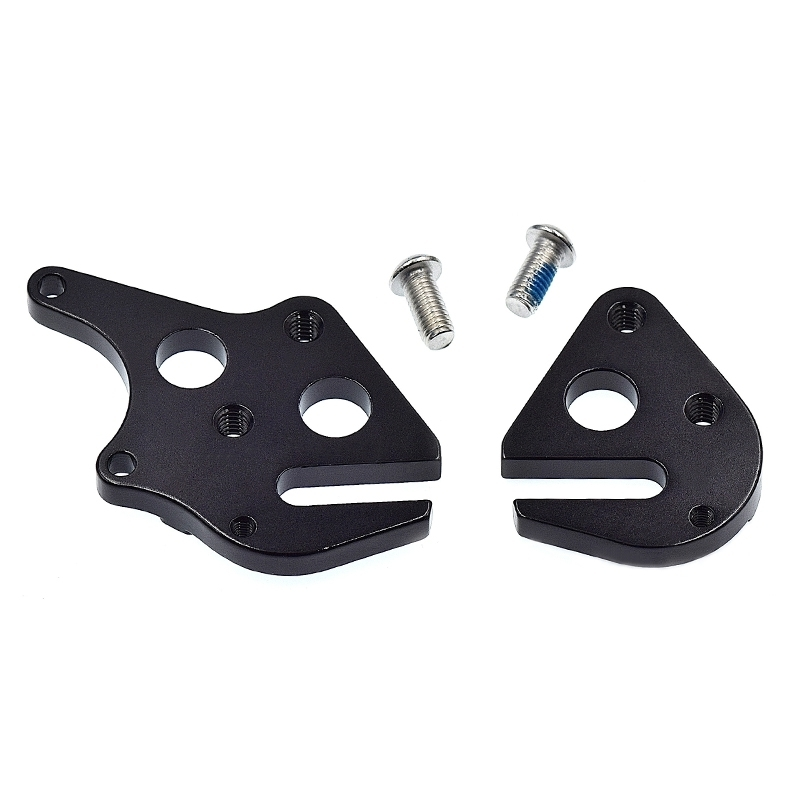 Paire de patte de dérailleur en aluminium noir avec 2 vis inox allen.